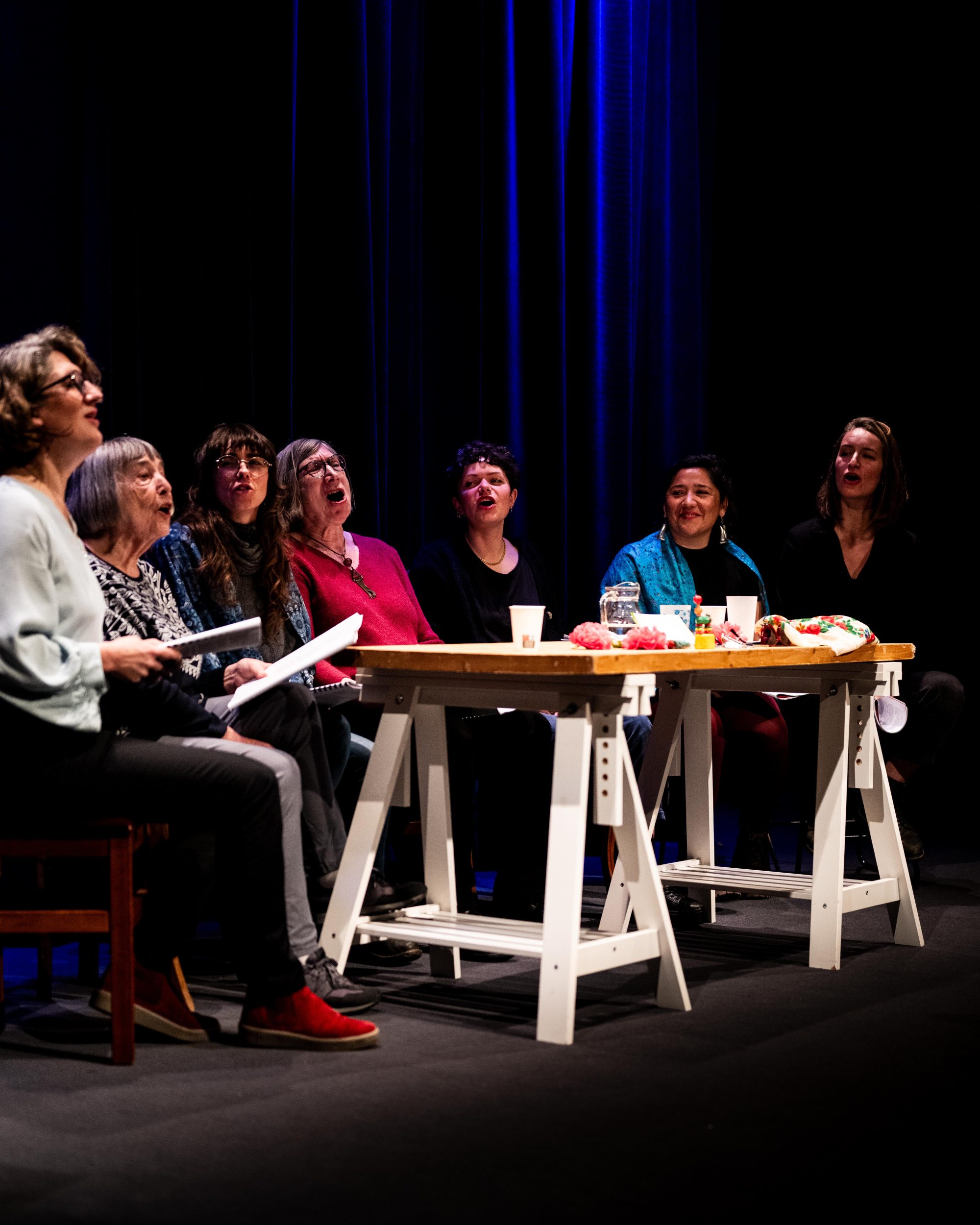 La création s’appuie sur un ample travail de recherche axé sur des histoires singulières transformées en récits sensibles et poétiques. Le documentaire et la fiction sont mis en tension pour créer une expérience dramaturgique traversant les luttes historiques et les vécus d’aujourd’hui.